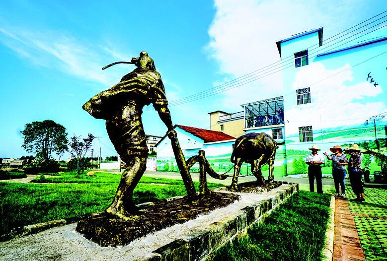咸安區(qū)向陽湖鎮(zhèn)寶塔村郭家灣文化廣場。寶塔村近年來投入300余萬元進行美麗村灣建設(shè)。目前已進行景觀路、村灣墻面藝術(shù)墻繪、立體觀光農(nóng)業(yè)大棚、4000平方米綠化帶等項目建設(shè),栽種景觀樹1000余棵。(湖北日報全媒記者 陳勇 通訊員 李星 吳濤 攝)