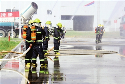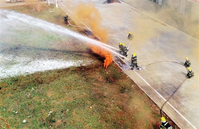 由200余人組成的民兵防火救災應急救援營,迅即分成偵查組、救生組、滅火組三個救援小組,配備應急搶修車、舉高噴射車、水罐泡沫消防車、灑水車、發(fā)電車等20余輛救援車輛,進入事發(fā)現(xiàn)場。