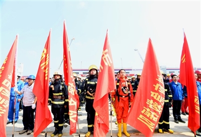 這是9月19日上午,我市今年舉行的又一場“迎大慶、保軍運”應急救援綜合拉動演練。