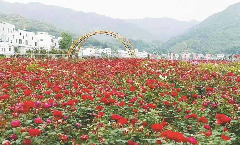 走進(jìn)月季莊園,20余萬株月季有的含苞待放,有的已迎風(fēng)綻放,喜迎八方來客。昔日的貧困村蛻變?yōu)槭痉洞?、明星村?/p>