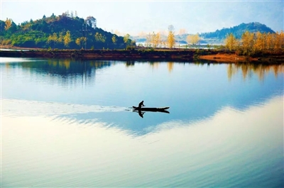 微風(fēng)拂過,水波蕩漾,片片蘆葦在水中搖曳,間或中激起的水花,驚起鷗鷺,青天之上便有了精靈的舞動,如此天上、地下、山中、湖面處處皆景,足以讓人心搖神醉。