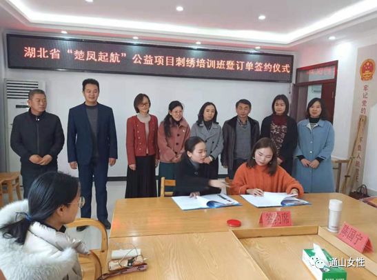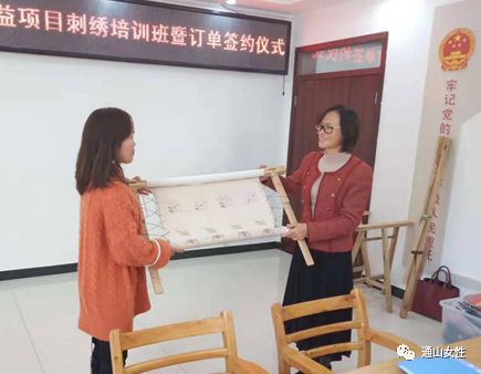 2019年12月11日,通山“繡娘”獲得首批訂單,踏上將“指尖技能”轉(zhuǎn)化為“指尖財(cái)富”的第一步,也是通山縣“巧山姑”手工技能培訓(xùn)項(xiàng)目初步成效的體現(xiàn)。訂單設(shè)定老鼠生肖肚兜、高山流水書簽、小夜燈繡片等12種樣式,共含繡刺任務(wù)500余件。繡娘收到訂單消息后,各個(gè)歡欣鼓舞,喜笑顏開,不少繡娘們互相鼓勁打氣,摩拳擦掌準(zhǔn)備大干一場?;貞?yīng)繡娘們的殷切期盼,訂單簽訂儀式于當(dāng)天下午在通山縣南林橋鎮(zhèn)石門村舉行,咸寧市婦聯(lián)主席陳海蓮、副主席張繼萍、通山縣副縣長張曉丹參加活動(dòng),縣婦聯(lián)主席張丹主持。