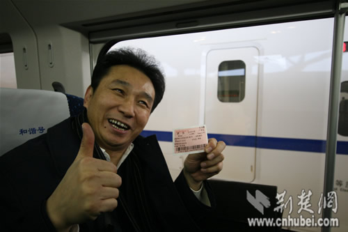 荊楚網(wǎng)消息(記者姚啟慧)26日上午9時(shí),武廣高鐵發(fā)出首趟列車(chē),不少武漢游客專門(mén)前來(lái)體驗(yàn),在3號(hào)車(chē)廂,記者遇到了武漢著名“笑星”田克兢。他坦言,乘高鐵體驗(yàn)既驚又喜,今后要把這次經(jīng)歷融入自己作品中。