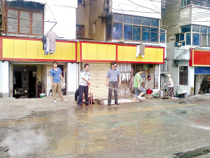 在武昌楊園路,市民劉先生昨天拍到了城管清洗路面的場景。劉先生說,這里一些餐飲攤子常年占道經(jīng)營,好好的人行道變成了黑色人行道。最近幾天,城管人員反復清洗被污染的路面:堿水泡、鏟子鏟、多功能路面去污機洗刷、清水沖洗,18般“武藝”都使出來了,挺不容易,要“贊”一個。(右上圖)