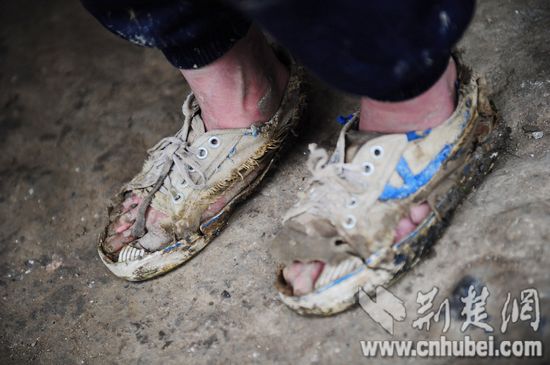 在大方縣興隆村,小女孩高燕穿的球鞋讓人觸目驚心。五個腳趾全露在外面,鞋面與鞋底僅靠幾根棉絲相連,高燕一直都是靠這雙鞋爬山上學,到了學校再換上好一點的球鞋。
